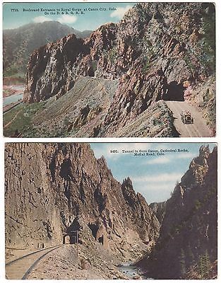 2 Old Postcards Tunnels in Colorado Gore Canon & Blvd Entrance to Royal Gorge