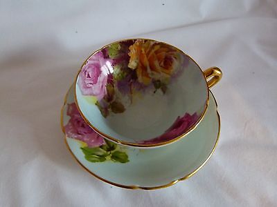 STANLEY TURQUOISE THREE ROSES GOLD HANDLE CUP AND SAUCER