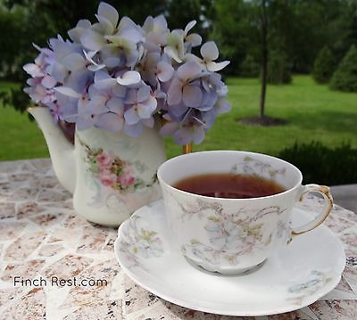 Title (ebay affiliate link): ANTIQUE LIMOGES FRANCE TEACUP & SAUCER SET lt blue flowers delicate translucent!