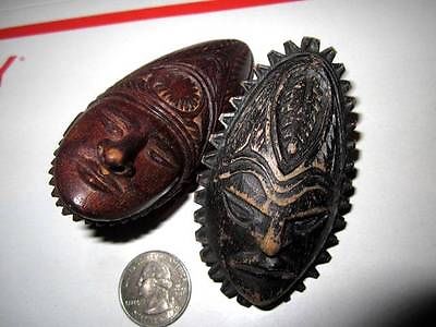 ANTIQUE/VINTAGE WOOD CARVINGS BALI OR INDONESIAN FACES ON RINGS VERY NEAT