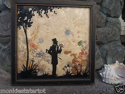 Title (ebay affiliate link): Fisher Hand Painted Reverse Silhouette RARE Framed Pic Man Top Hat Cane Flowers
