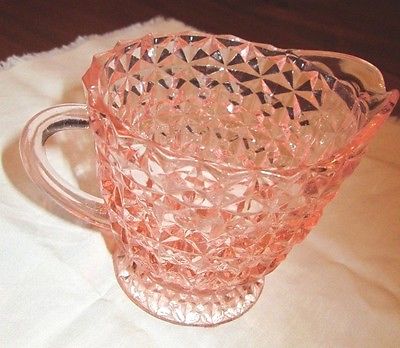 Title (ebay affiliate link): Pink Depression Glass FacetedButttons Bows Creamer Antique 1940's EUC