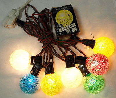Title (ebay affiliate link): VINTAGE WORKING 7 STRAND SET ICED BALL CHRISTMAS LIGHTS WITH OLD CORD & CLIPS #B
