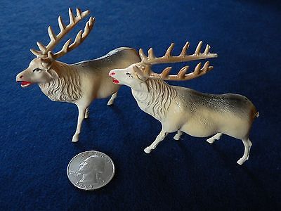 Vintage Pair of Brown Celluloid Reindeer Marked USA CV 3" Christmas Ornament