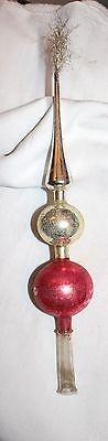 Late 1800s Red, Gold, & Silver Glass Tree Topper. German. Tinsel Spray on Top.