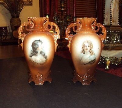 PAIR OF ANTIQUE VINTAGE AUSTRIAN PORTRAIT VASES