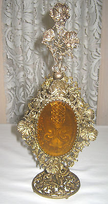 Title (ebay affiliate link): Antique Gold Gilt Filigree Ormolu Vanity Perfume Bottle w Dauber Beveled Glass