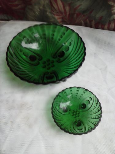 Title (ebay affiliate link): Vintage Anchor Hocking Green Berry Bowls Footed Bubble Glass Bowl Set