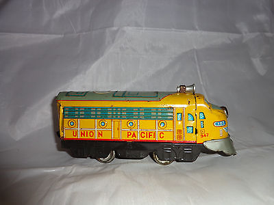 Vintage Train Engine, Union Pacific #947, #107, Yellow Tin Litho, Japan