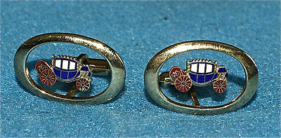Body by Fisher Gold Tone Salesman Cuff Links w/Blue & White Enameled Coach