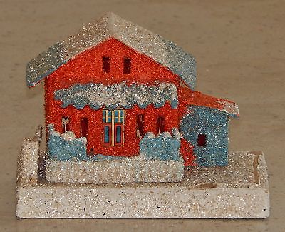 Vintage Antique Christmas Putz Train Village Cardboard House Coconut Mica Japan