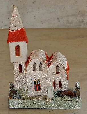 Title (ebay affiliate link): Vtg Antique Christmas Putz RR Village Church Cardboard House Coconut Mica Japan