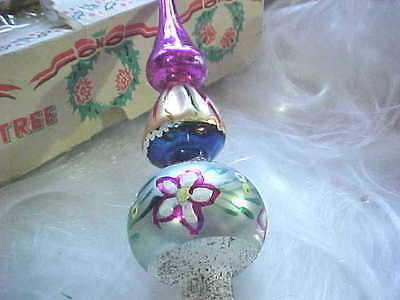 Antqiue Vtg Mercury Glass Small Xmas Tree TOP Ornament TOPPER Pink TEAL Poland