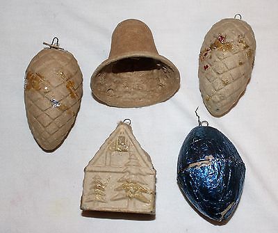Title (ebay affiliate link): Five U.S.A. Cardboard Ornaments. Two Pine Cones, House, Bell, and Egg Container
