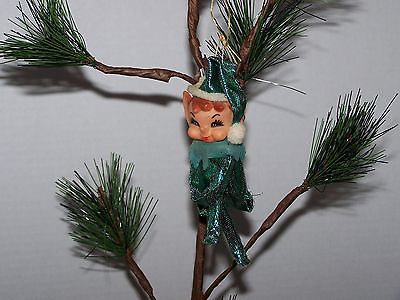 Title (ebay affiliate link): VINTAGE GREEN METALLIC KNEE HUGER PIXIE ELF CHRISTMAS ORNAMENT JAPAN