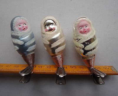 LOT OF 3 OLD CLIP ON BLOWN GLASS BABIES IN SWADDLE Christmas Ornaments