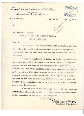1903 TERMINAL RAILROAD ASSOCIATION ST. LOUIS LETTER BUILD CONNECTION ROCK ISLAND