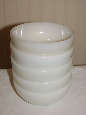Title (ebay affiliate link): Vintage Fire King, 5 White Milk Glass Cereal, Soup, Salad Bowls 5"