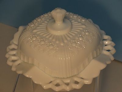 Vintage White Milk Glass ~ Fostoria ~ Covered Candy Dish