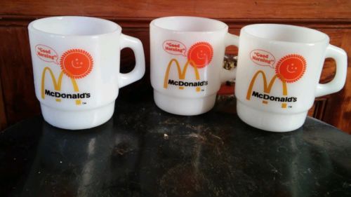 Title (ebay affiliate link): Lot of 3 Fire King McDonald's Good Morning Milk Glass Stack Mugs/Cups