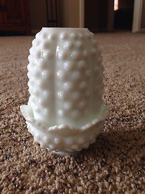 Title (ebay affiliate link): Vintage FENTON White Milk Glass Hobnail Fairy Lamp Candle Lite 2 piece Marked