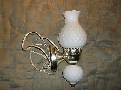 Hobnail Milk Glass Wall Mount Scone Electric Light Lamp Turn Switch Vintage
