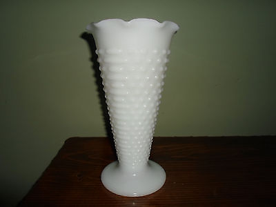 Title (ebay affiliate link): Vintage Fenton Hobnail Milk Glass Vase Ruffle Top - 9-1/4" Tall White - NICE