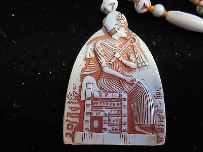 VINTAGE KING TUT BLUE MILK GLASS MEDALLION NECKLACE