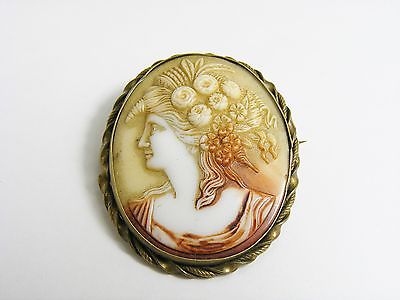 ANTIQUE VICTORIAN DECO CARVED MILK GLASS ? CAMEO LADY PIN BROOCH PENDANT VINTAGE
