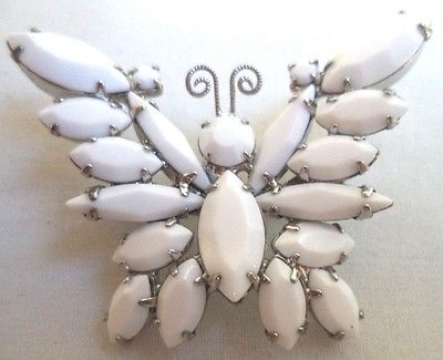 Title (ebay affiliate link): STUNNING VINTAGE ESTATE JULIANA D&E MILK GLASS RHINESTONE BUTTERFLY BROOCH! G441