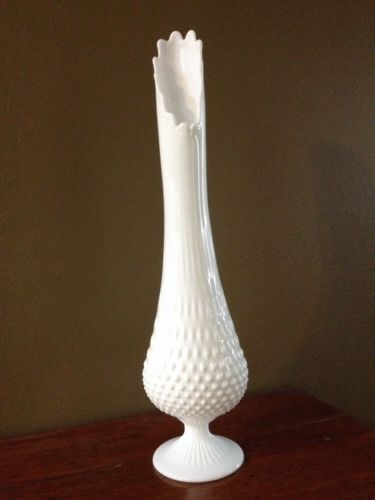 Title (ebay affiliate link): 19 1/2" Tall Fenton White Milk Glass Hobnail Pulled Glass Vase~Marked~Nice!!!