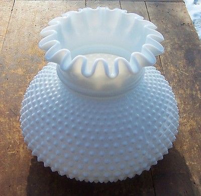 Title (ebay affiliate link): Vintage Fenton White Milk Glass Hobnail Art Glass Oil / Electric Lamp Shade