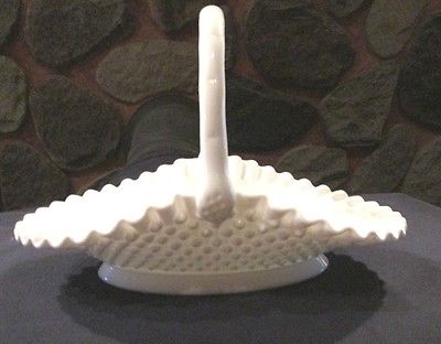 Title (ebay affiliate link): VINTAGE 13" FENTON ART MILK GLASS OVAL RUFFLED HOBNAIL Dinner Bride's BASKET