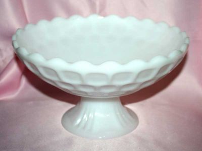 VINTAGE MILK GLASS PEDESTAL BOWL SCALLOPED EDGE SQUARES