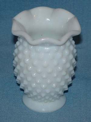 VINTAGE WHITE MILK GLASS HOBNAIL PATTERN SMALL VASE
