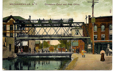 Title (ebay affiliate link): NEW YORK POSTCARD ~ CHAMPLAIN CANAL AND POST OFFICE, MECHANICVILLE, NY CW HUGHES