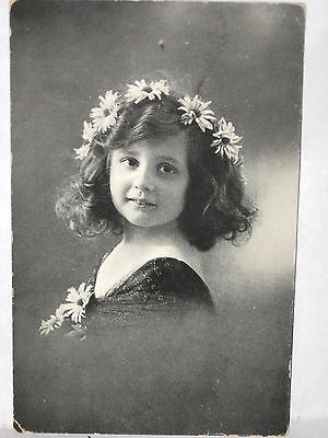 1912 POSTCARD PORTRAIT OF YOUNG GIRL WITH DAISIES IN HER HAIR