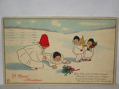 1920 POSTCARD MERRY CHRISTMAS, CHILDREN IN HARLEQUIN COSTUME