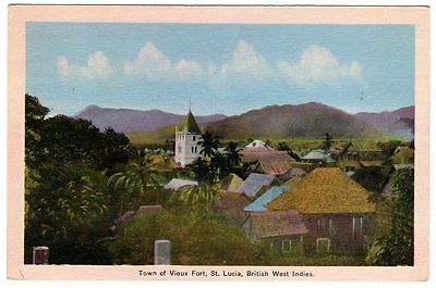 St Lucia - Town of Vieux Fort 1930's Peco postcard