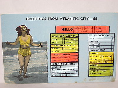 Title (ebay affiliate link): 1954 LARGE LETTER POSTCARD GREETINGS FROM ATLANTIC CITY PRETTY GIRL ON BEACH