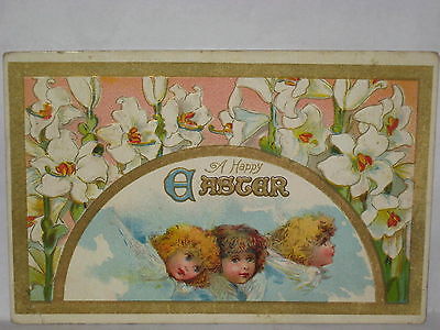 1909 POSTCARD A HAPPY EASTER, ANGELS AND LILIES
