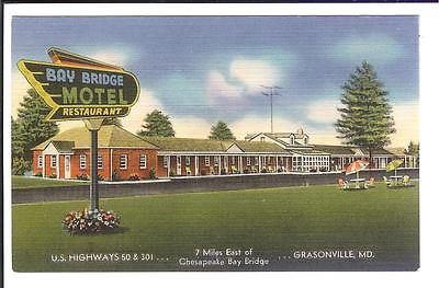 Title (ebay affiliate link): Bay Bridge Motel, Grasonville, MD.U.S. 50 & 301, linen postcard