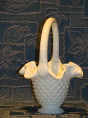 Fenton Hobnail Milk Glass Ruffled Edge Petite Basket