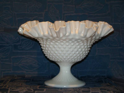 Fenton Hobnail Milk Glass Pedestal Ruffled 10" Bowl