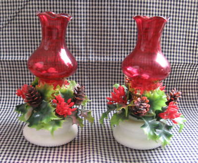 Miniature Christmas Milk Glass Oil Kerosene Light Lamps