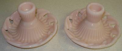 Fenton Pink Melon Opaque Milk Glass Candle Holders