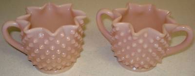 Fenton Pink Hobnail Melon Opaque Milk Glass Cream Sugar