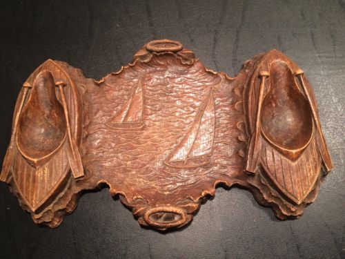Title (ebay affiliate link): Vintage Hand Carved Nautical Tray Boats Water Oares Brown Pre-1950 Coin Dish