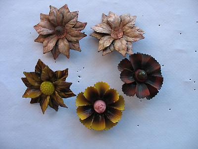 Vtg. Metal Curtain HoldBacks, one matching pair plus 3 singles, plastic centers