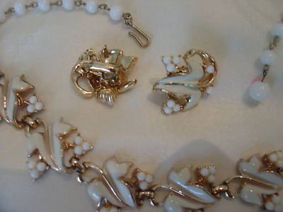 VINTAGE CORO NECKLACE DEMI MILK GLASS & ENAMEL LEAF #27